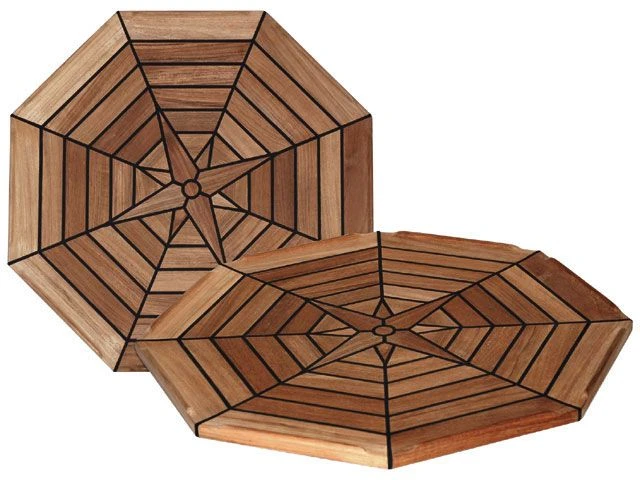 Acht-hoekig teak tafelblad van hoge kwaliteit, met een nautisch motief.