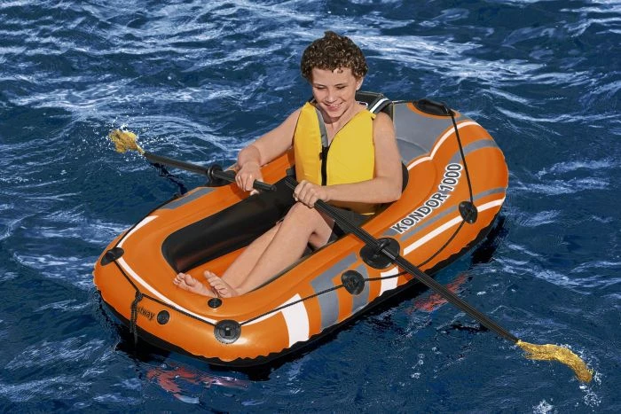 De Hydro Force Kondor 1000 is gemaakt van 1-laags PVC. Dit materiaal is zeer licht en functioneert daarom goed als drijfmiddel. De drie luchtkamers van de Hydro Force Kondor 1000 zorgen ervoor dat u niet zal zinken als er één luchtkamer kapot gaat. De andere twee luchtkamers zullen dan functioneren als drijfmiddel. Dankzij het veiligheidskoord rondom de opblaasboot kunt u zich vasthouden als u in het water valt. De drie luchtkamers en het veiligheidskoord zorgen ervoor dat de Kondor 1000 een erg veilige opblaasboot is.