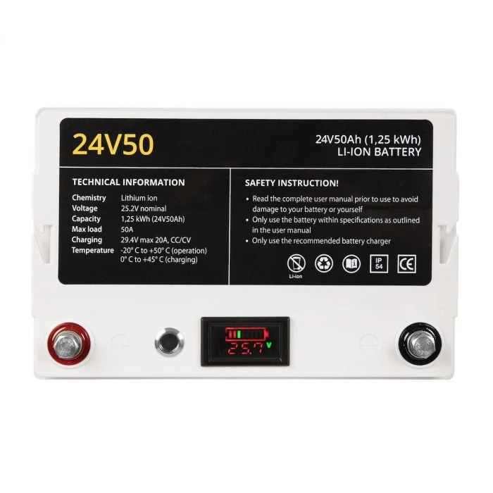 De Rebelcell 24V 50AH lithium accu is alleen oplaadbaar met de Rebelcell 24V 50AH acculader. De Rebelcell 24V 50AH lithium accu is uniek, dankzij de LED accu-indicator op de bovenkant van de Rebelcell accu. Hierop heeft u ten alle tijden het voltage en het percentage capaciteit van de accu inzichtelijk. Zo kunt u zonder zorgen uw accu gebruiken.