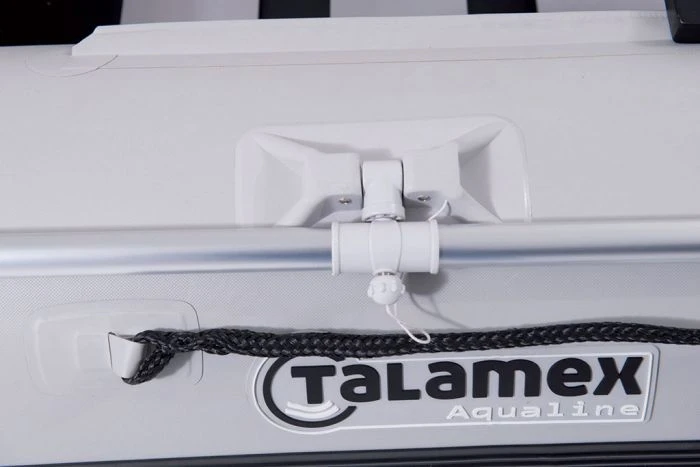 De Talamex QLS 250 is een 3 persoons rubberboot die geschikt is voor 2 volwassenen en een kind. De Talamex QLS 250 kan tot 350kg aan gewicht dragen. Het vaarklaar maken van de Talamex QLS 250 kost slechts 5 minuten. Vanwege de geïntegreerde lattenbodem is deze boot ook erg snel op te bergen, u rolt de QLS 250 rubberboot eenvoudig op. De houten spiegel is geschikt voor zowel verbrandings- als elektromotoren tot 5PK (of 2,9kW) en onderin is een luxe lensplug ingebouwd. De houten zitbank is verstelbaar volgens een slidersysteem, wat een praktische en duurzame oplossing is.