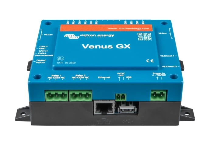 De Victron Venus GX is een communicatiecentrum ideaal voor uw Victron installatie. De Victron Venus GX zorgt voor een intuïtieve regeling en bewaking van uw Victron-stroomsysteem. Het grote voordeel van de Victron Venus GX is dat u live-gegevens aan de hand van bluetooth binnenkrijgt. Hierdoor kunt u op uw smartphone of ander apparaat inzicht krijgen in een aantal belangrijke gegevens. Denk aan: de laadstatus van uw accu; het huidige stroomverbruik; de door de zonnepanelen gegenereerde stroom; de stroomvoorziening via het elektriciteitsnet of een aggregaat.