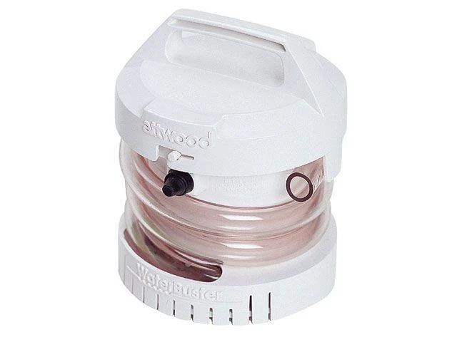 Een compacte draagbare bilgepomp met een capaciteit van 54L per uur.